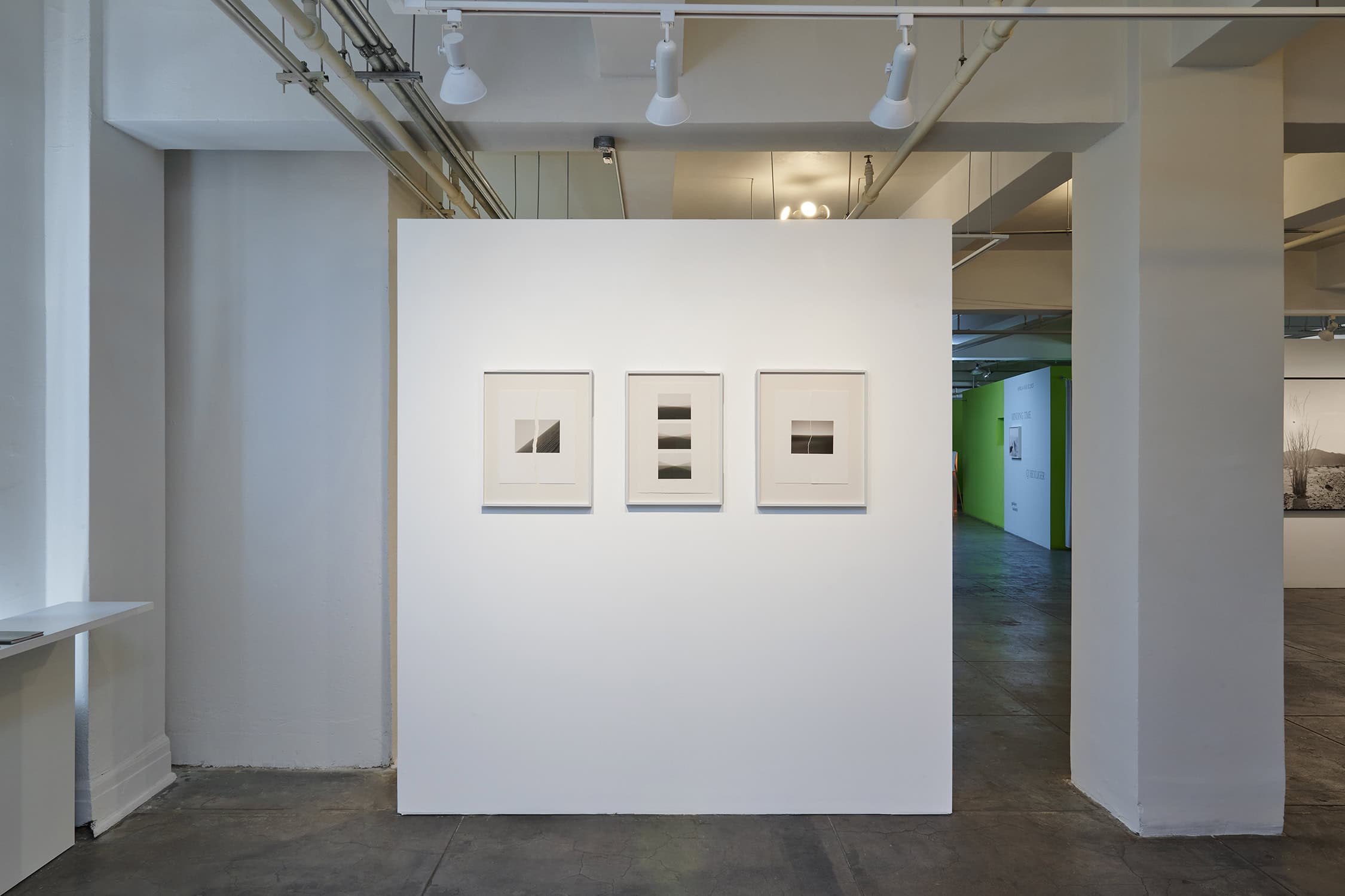 The earliest work in the exhibition is Goler Canyon (from Nothing Stands Still), which presents the viewer with vibrating geometries of a desert canyon and mountain ridge that are the result of multiple visits to the same site over time. During these trips the artist would try to reorient himself and see how closely he could make the same photograph on the same piece of film. The resulting image not only points to a layering of time which is present in the physical geologies of the sites but also undercuts the idea of a photograph representing a singular moment.