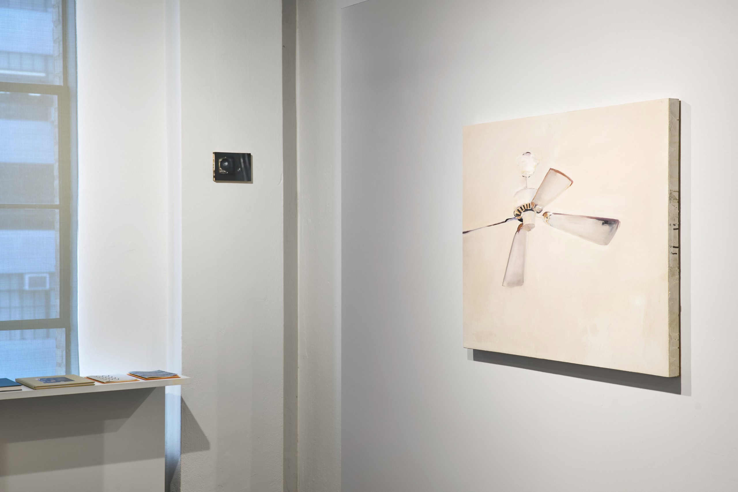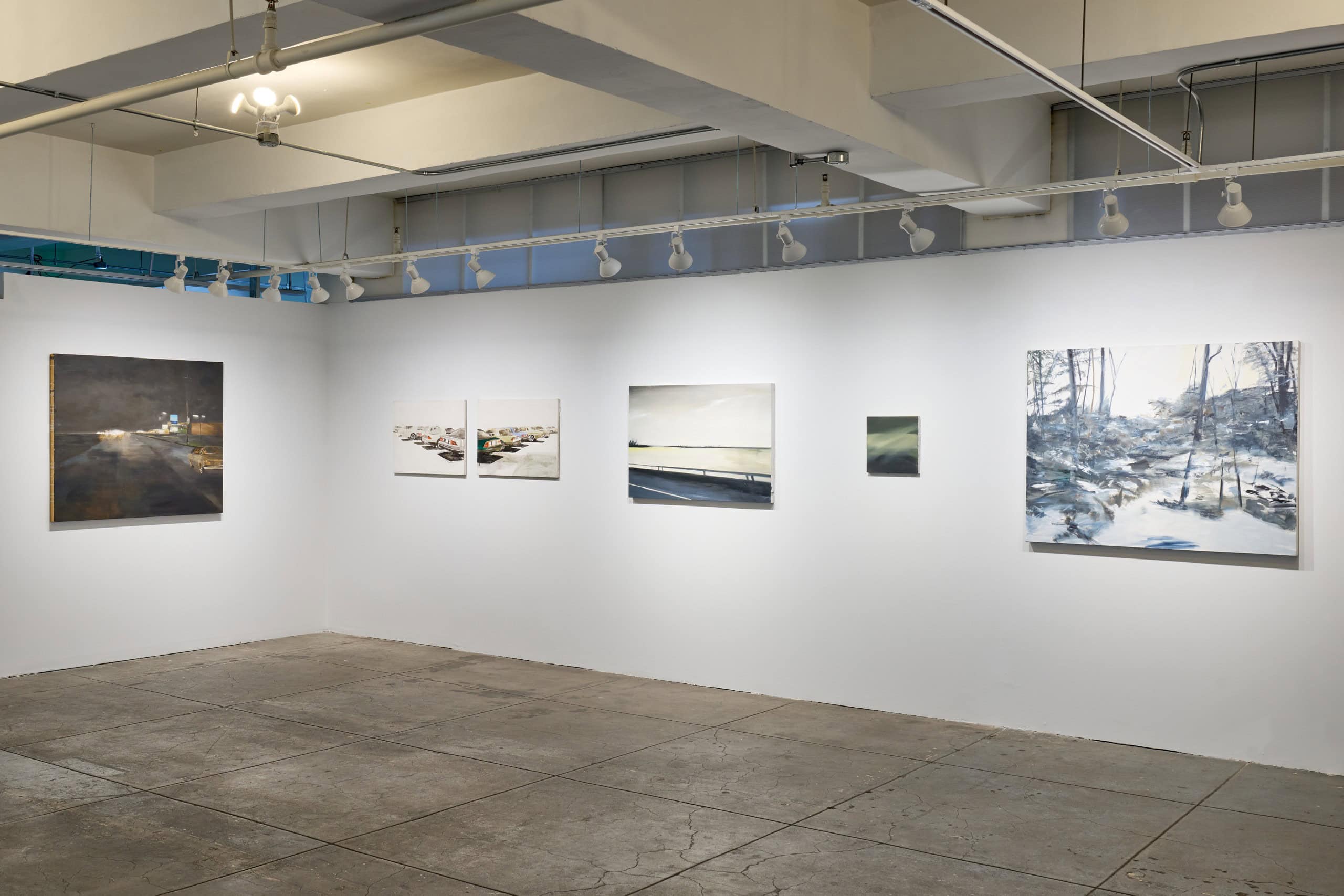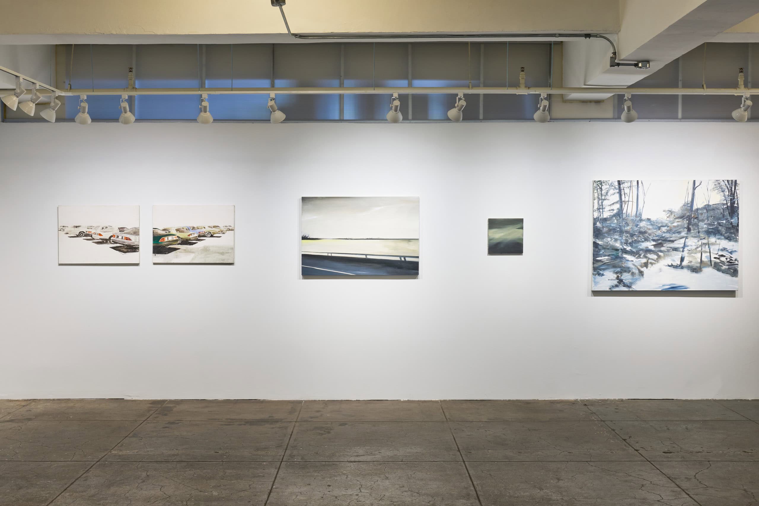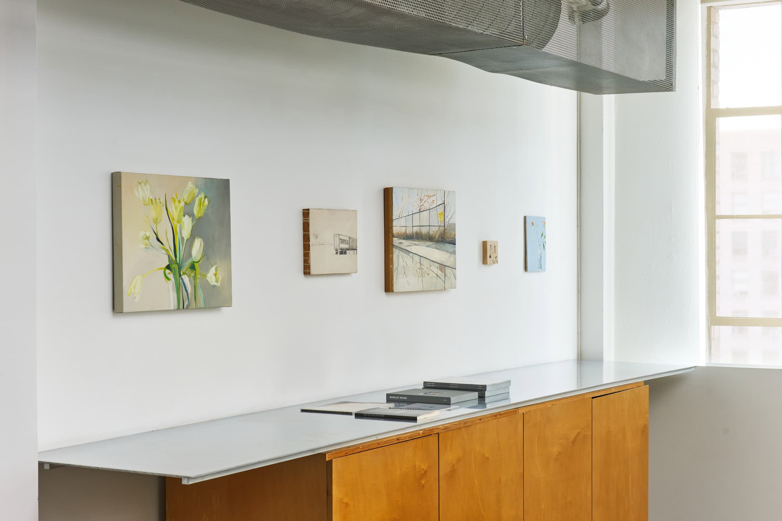 Irons’ subtle oil paintings, made between 1988 and 2019, of landscape fragments and urban interiors based on photographs taken as she drives through urban spaces, blends realistic details with abstract applications of paint to explore how much information is necessary to render an image legible. These fleeting landscape scenes, often capturing the perspective of someone on the move, gives meditative attention to side-glances and everyday objects. Influenced by late Manet, Morris Graves, Janice Biala and particularly Vija Celmins, she extracts moments in the landscape and creates a simple, nuanced rendition of a lamp or a tiny section of the ocean or sky, fleeting moments of infinity.