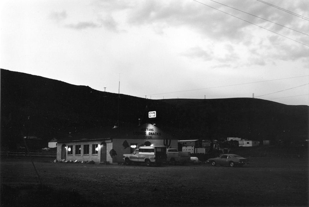 In 15 images “Nevada” reads the landscape like a Western motion picture. Out of it a near iconic image of western Americana emerges: a bar-room with a pick-up truck parked out front at sundown. Yet the same series presents a decisively violent moment: a fluorescent tube left on a dirt path, crushed in its mid-section. The image is stark, presenting the technological as destroyed in the wilderness. The photograph underpins Baltz’s work from that point on; it senses that westward expansion has turned on itself in an entropic cannibalism.