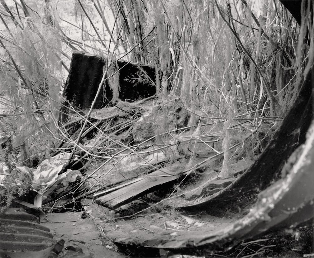 Five years later, in his portfolio “San Quentin Point,” Baltz shows a keen awareness of the escalating degradation of ecologically sensitive areas . In this series of stunningly crisp images, one finds garbage and unidentifiable refuse in differing states of biodegradation. Yet they are also in a state of techno-degradation; these otherworldly landscapes depict the meeting point of destroyed biology and the disregarded waste of a technologically advanced society.