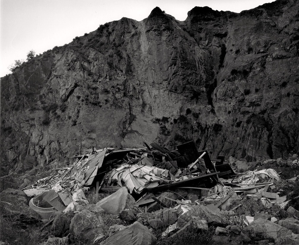 Gallery Luisotti is pleased to announce the exhibition Lewis Baltz – Desert of Disintegration. Focused on three key portfolios, “Nevada” (1978), “San Quentin Point” (1983), and “Near Reno” (1986), and selected individual works from that period, Desert of Disintegration represents the middle of Baltz’s career. With his multi-image portfolios of the 1970s, Lewis Baltz became known for his objective depiction of an increasingly manufactured landscape. As Baltz once claimed, “it might be more useful, if not necessarily more true, to think of photography as a narrow, deep area between the novel and film.” The works represented in Desert of Disintegration represent the pinnacle of that photographic process, as each portfolio presents a distinct location through precisely selected images of that place. Expanding his interest in the man-altered landscape, these key later works consider the disintegration of westward expansion through meticulously processed images of detritus in the landscape.