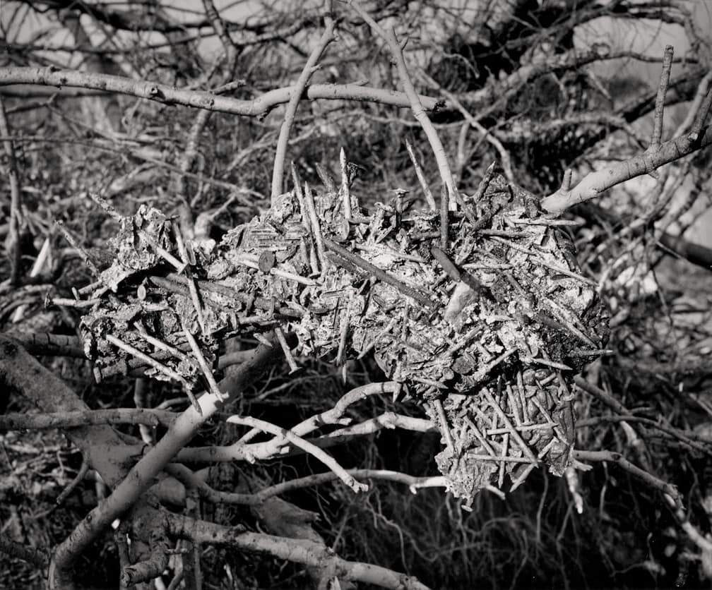 In one of his final works created in the United States, Baltz’s “Near Reno” is a succession of silvery white exurban spaces surrounding an urban, tract home infrastructure. Baltz depicts Reno as a no-man’s land, built in an inhospitable high desert locale. Shooting shot materials, the images in “Near Reno” portray improvised firing ranges and roadside banalities. “Near Reno” captures the microscope and the overlooked to deliver and uneasy portrayal of life in the desert West.
