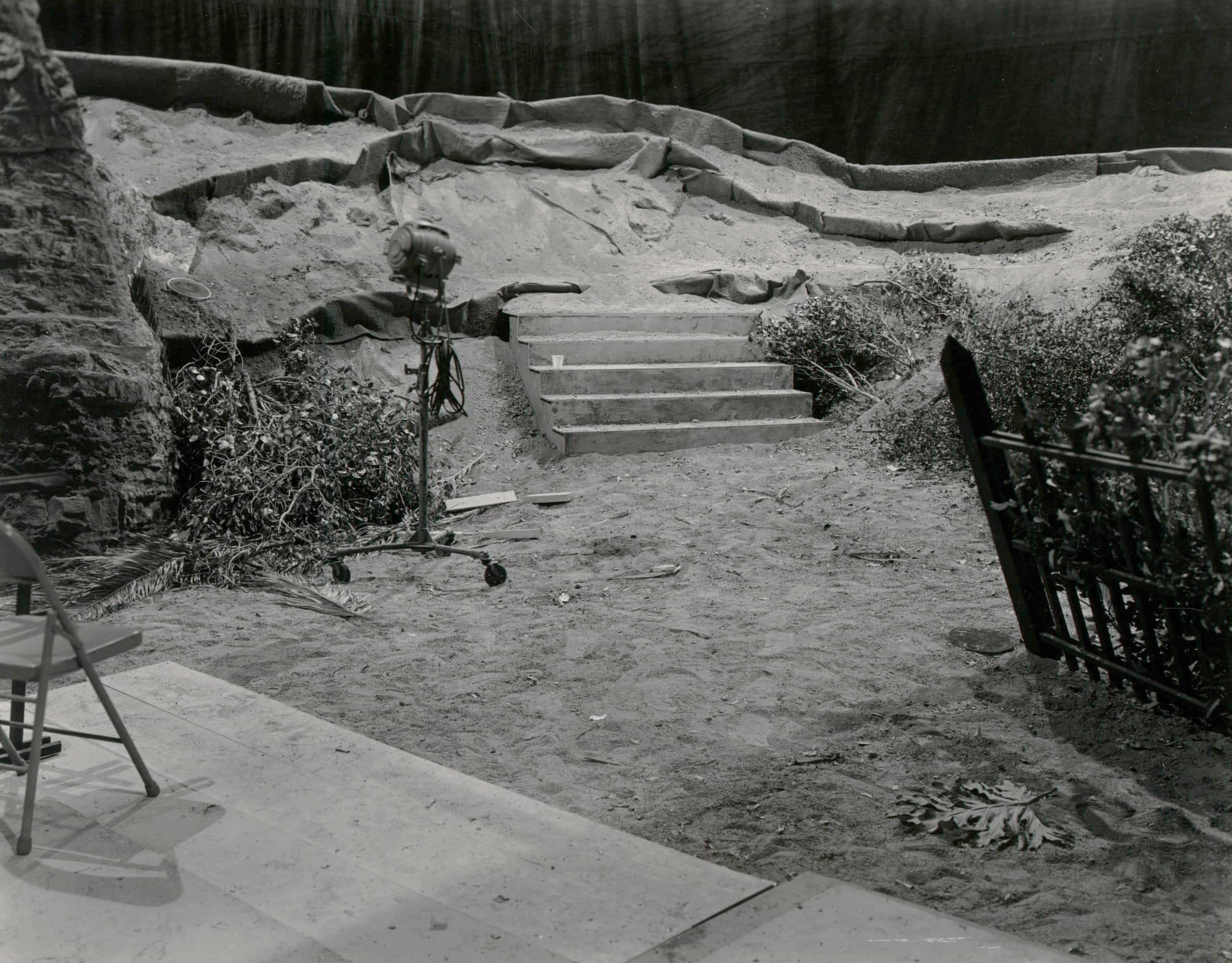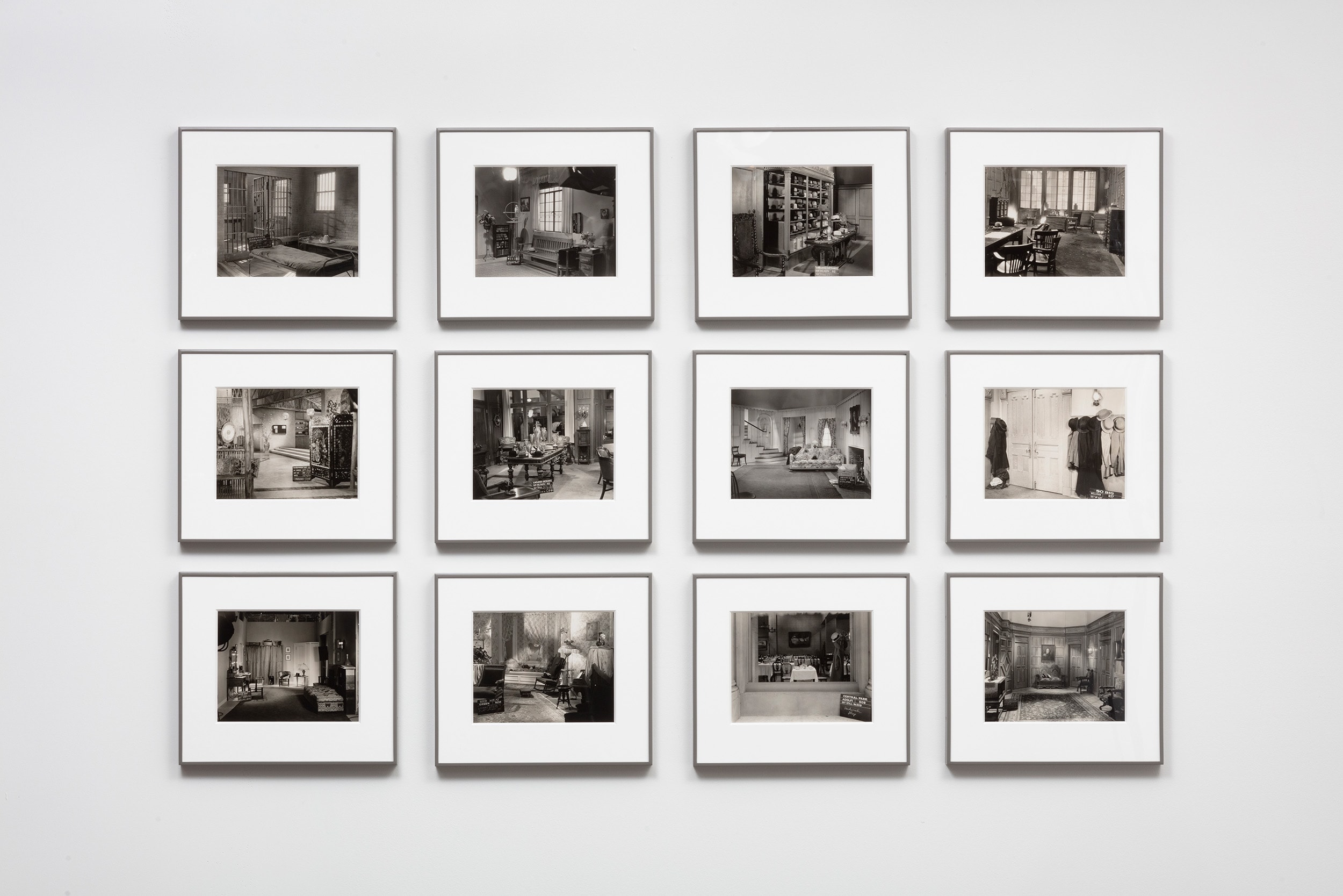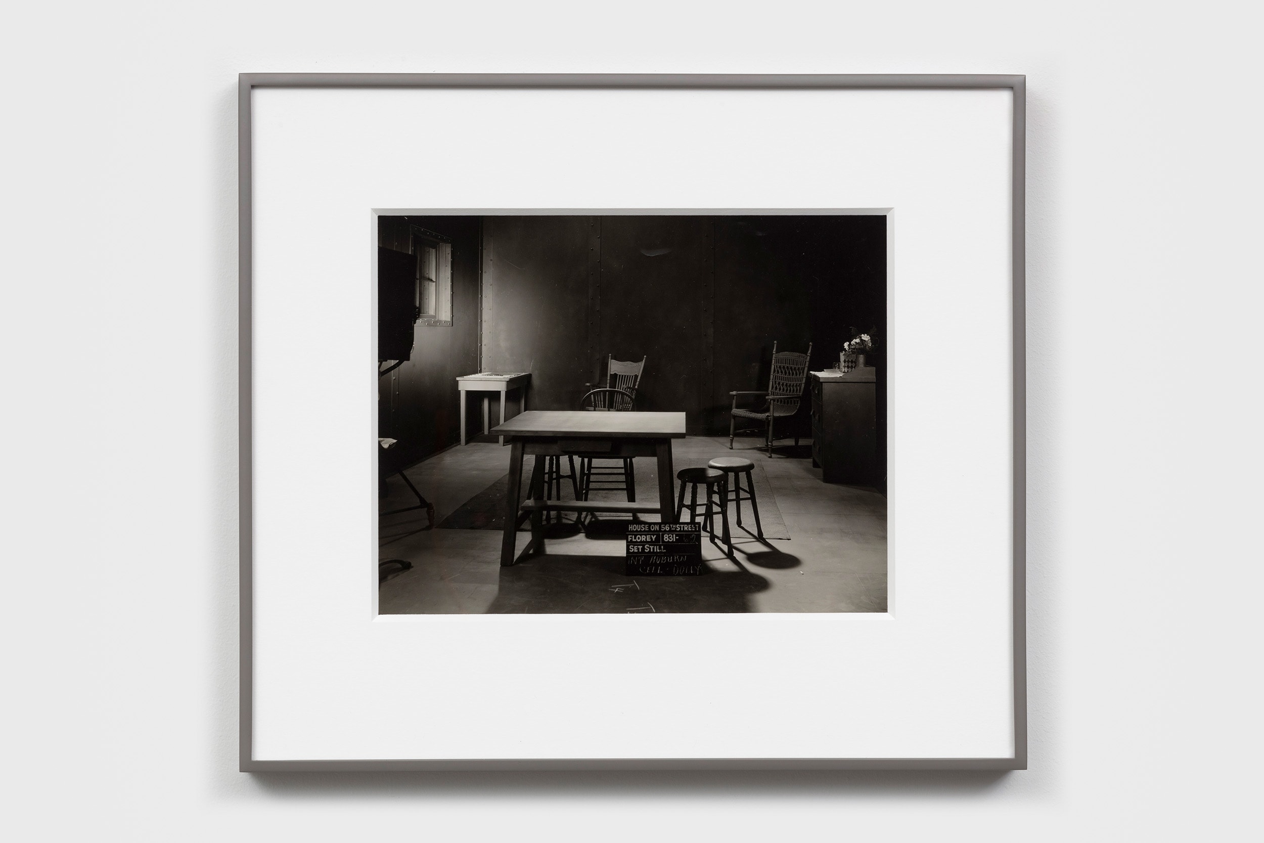 Movie studios have long employed professional photographers to document film sets for continuity. In the 1930s and 40s, these photographers used eight-by-ten cameras and contact printed each photo directly from the negative. The resultant photos were sharp and unusually striking for such pragmatic pictures, with every detail rendered visible. But with no practical value after production wrapped, these utilitarian images were discarded, ending up in second-hand stores, flea markets, memorabilia shops, and dumpsters. That’s how they got into the hands of John Divola and Robert Cumming, who discovered them separately in the 1970s and 80s and found in them a deep connection to their own bodies of work.