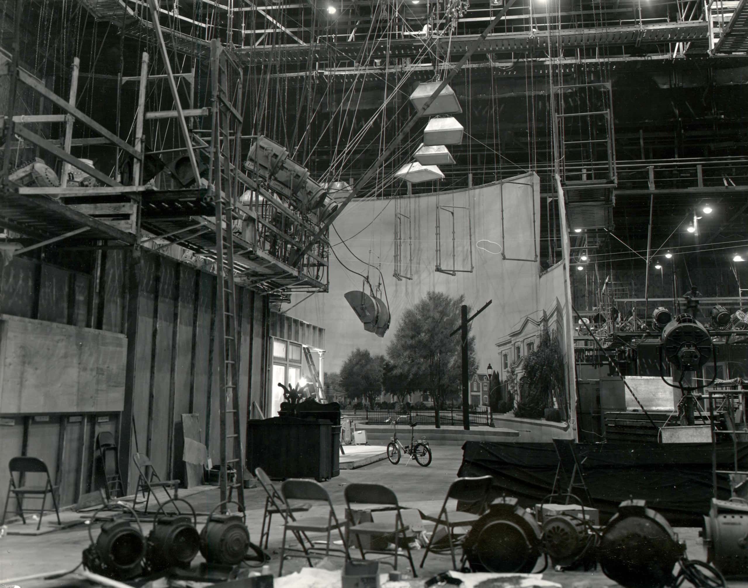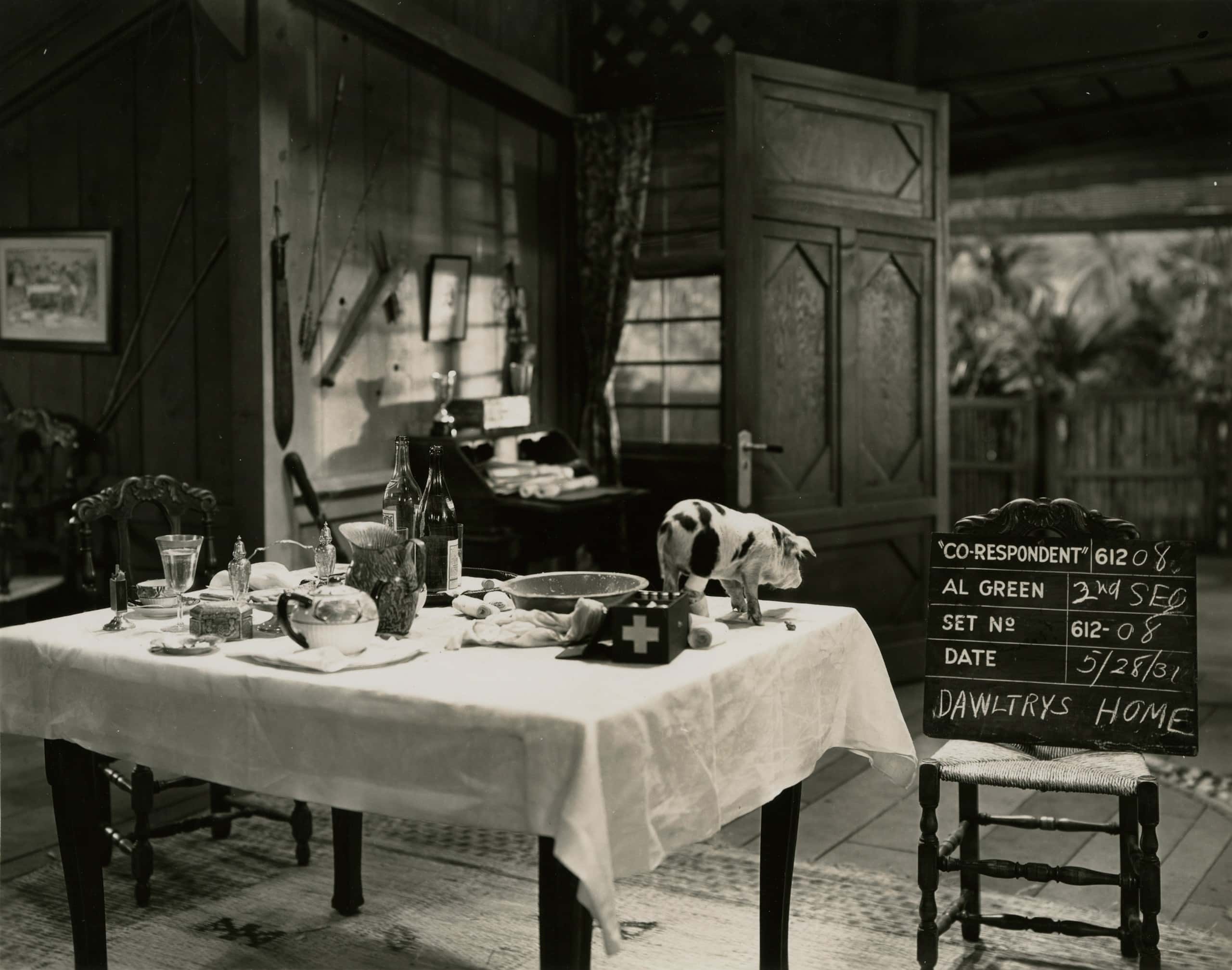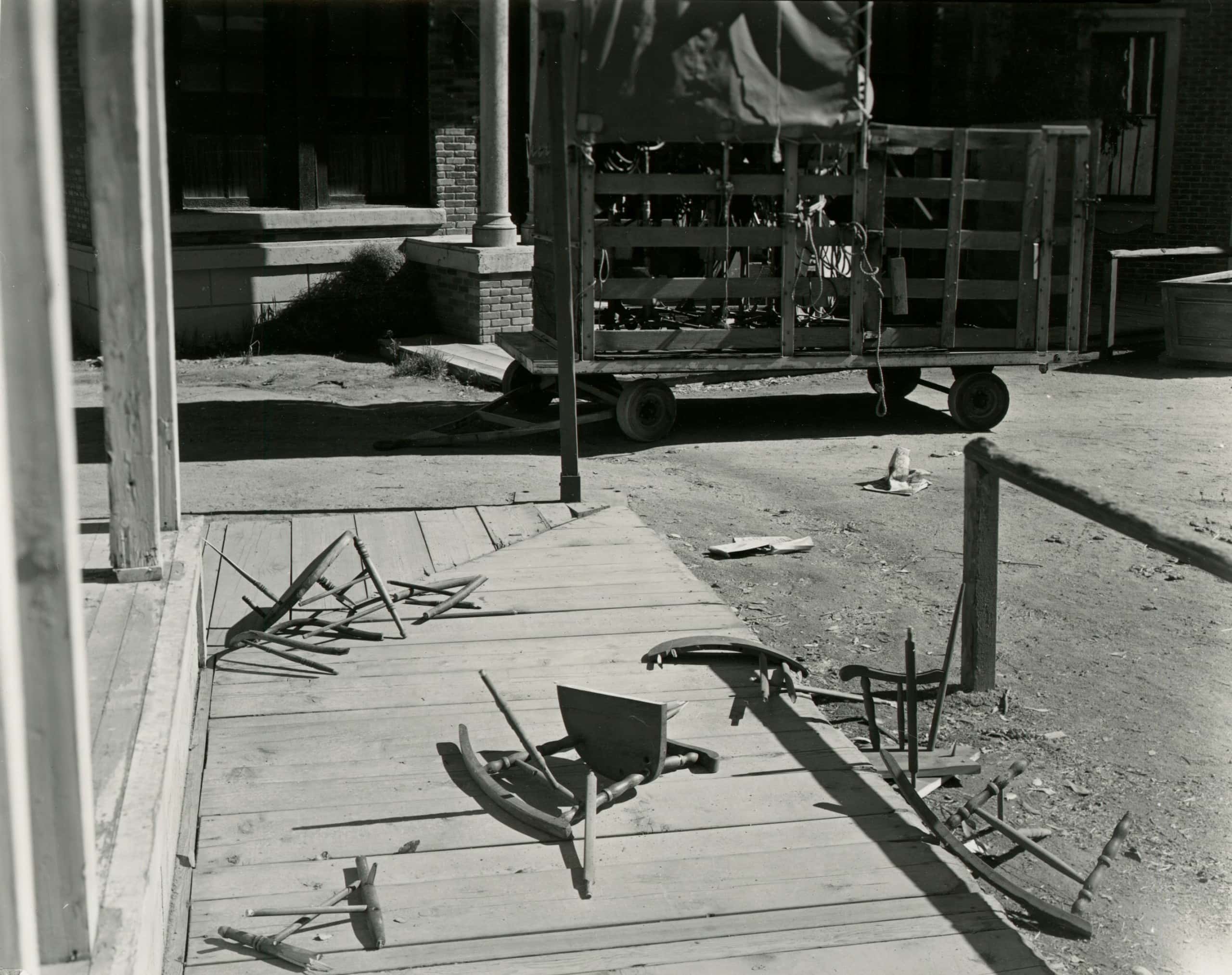 Movie studios have long employed professional photographers to document film sets for continuity. In the 1930s and 40s, these photographers used eight-by-ten cameras and contact printed each photo directly from the negative. The resultant photos were sharp and unusually striking for such pragmatic pictures, with every detail rendered visible. But with no practical value after production wrapped, these utilitarian images were discarded, ending up in second-hand stores, flea markets, memorabilia shops, and dumpsters. That’s how they got into the hands of John Divola and Robert Cumming, who discovered them separately in the 1970s and 80s and found in them a deep connection to their own bodies of work.
