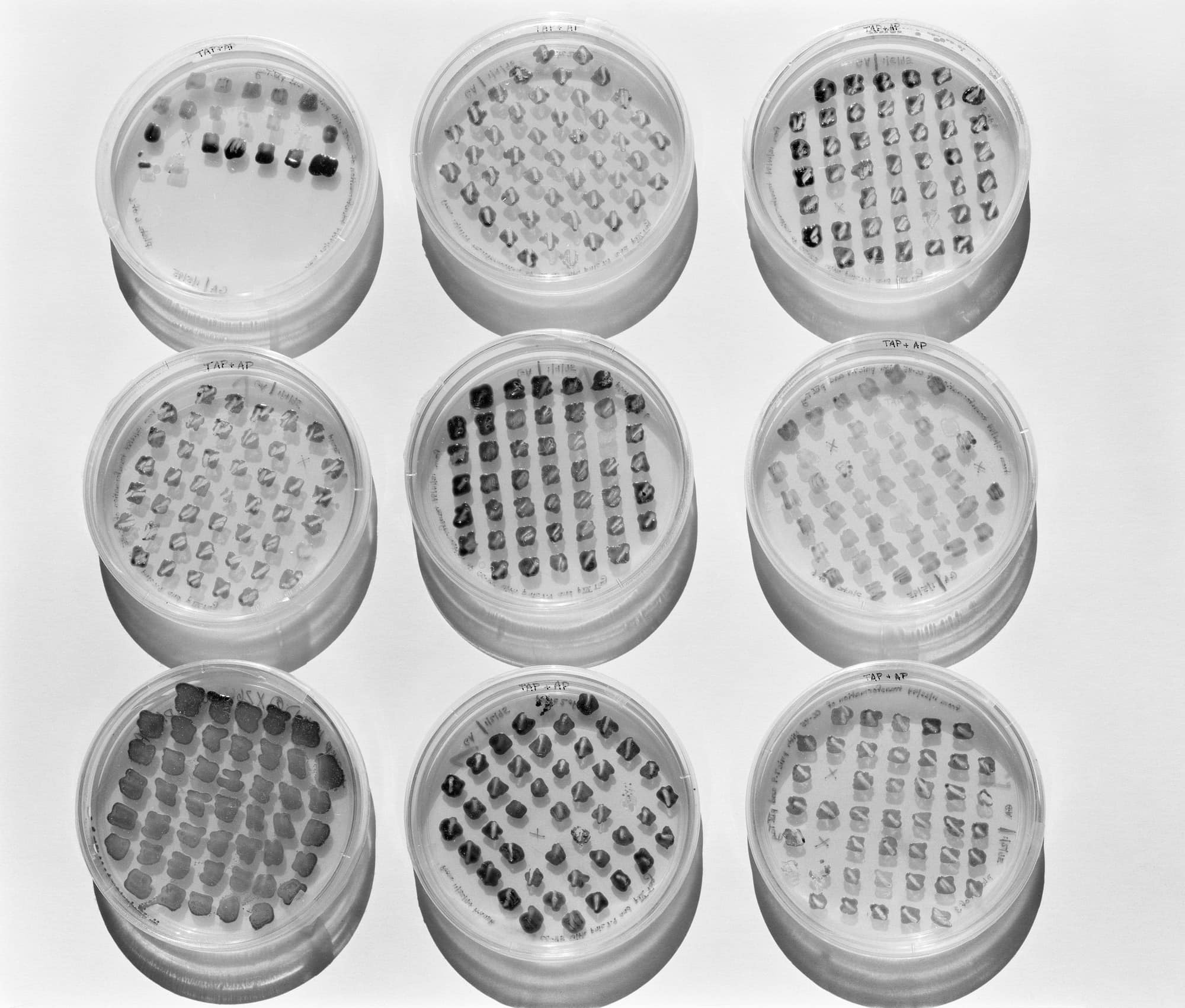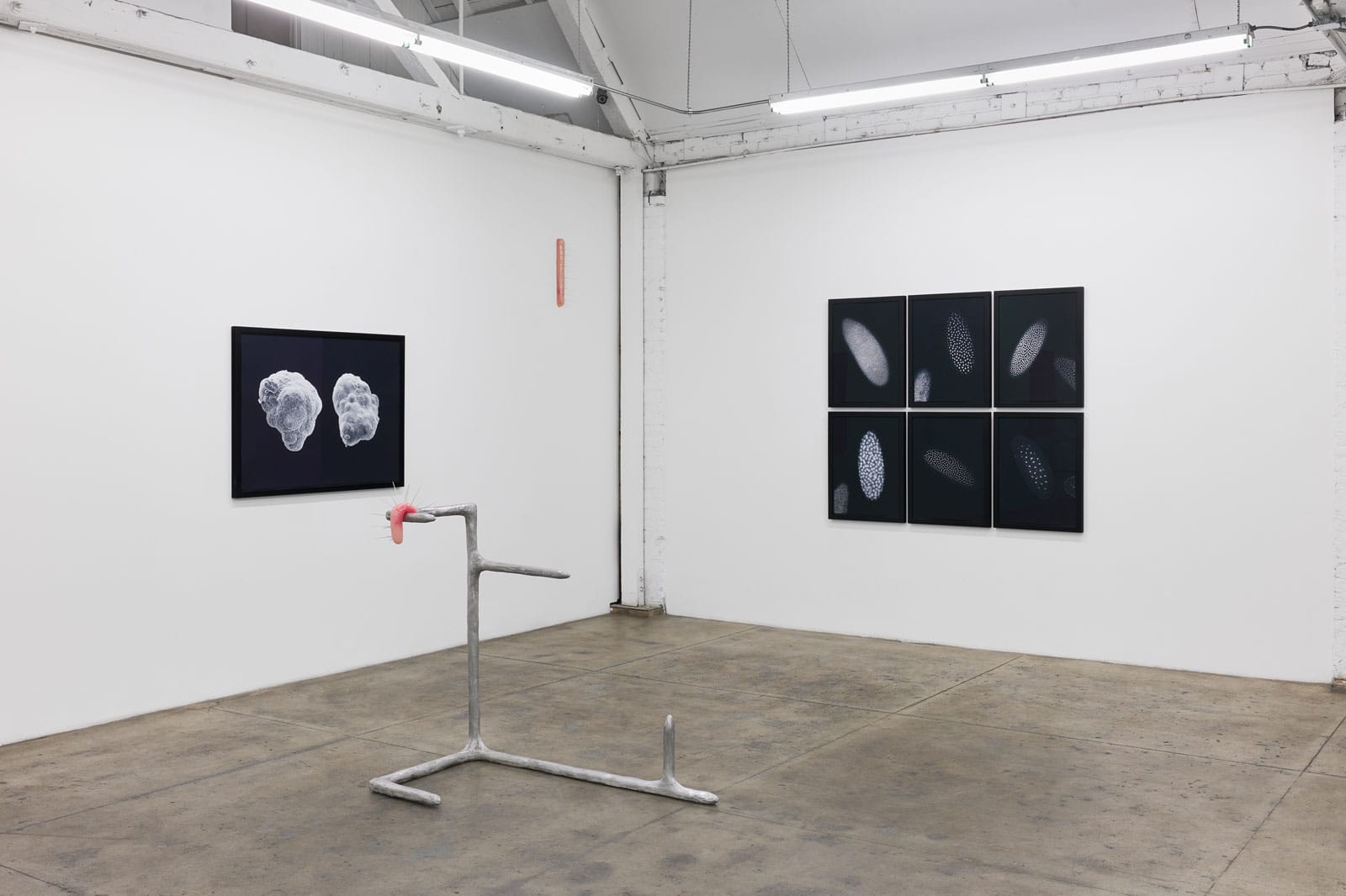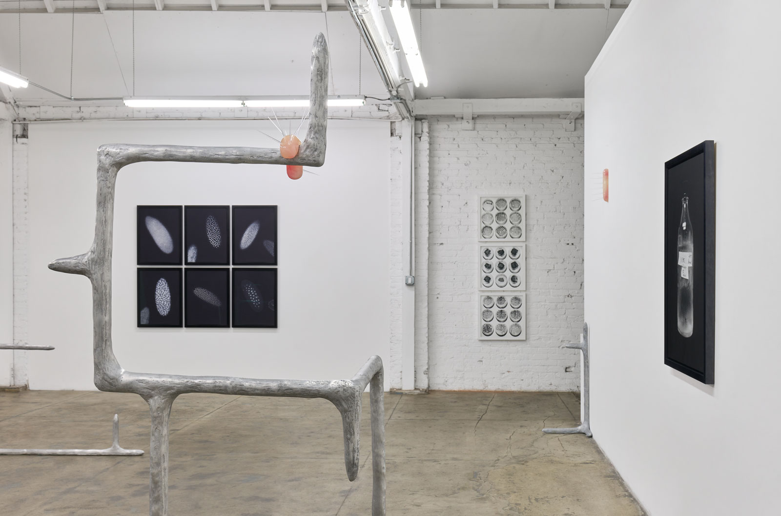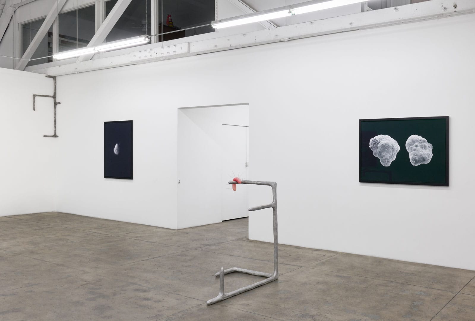 Gallery Luisotti and Royale Projects are pleased to announce, Micrographia, the first joint exhibition of Karen Lofgren and Catherine Wagner, opening July 27th, 2022. In response to momentous developments in biological science in the late 20th century (e.g., the Human Genome Project or Dolly the sheep), Wagner photographs laboratories used for cellular, genetic, and genomic research, gleaning them for abstract compositions and larger cultural truths. Lofgren, on the other hand, looks to both ancient and emerging scientific fields, researching life’s elemental drives and abounding threats through embodiment and rituals. Inspired by the odd similarity between the biomorphic sculptures and the cross-sections of cells in the photographs, this show stages dialogue between healing practices and the biological industry, individual techniques of the body and the large-scale management of disease.