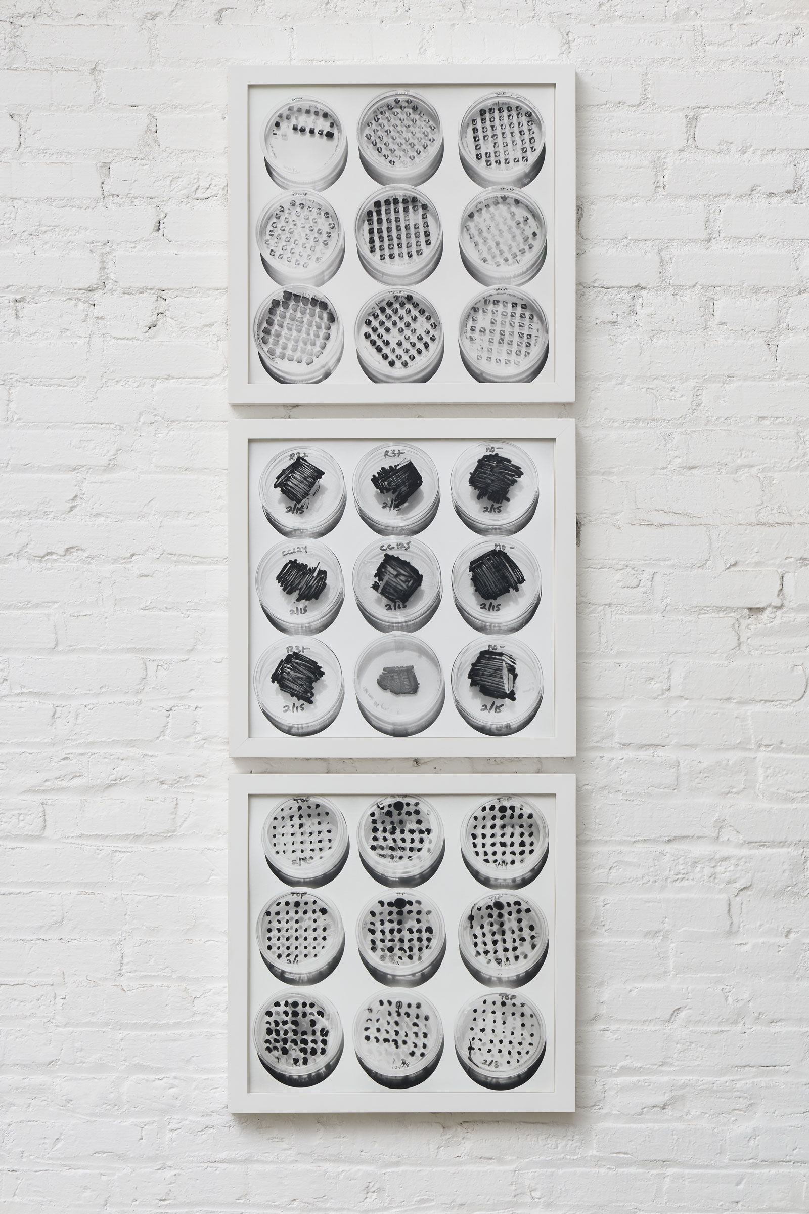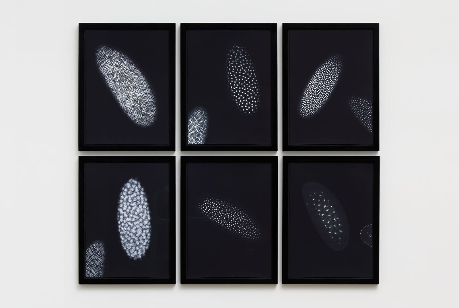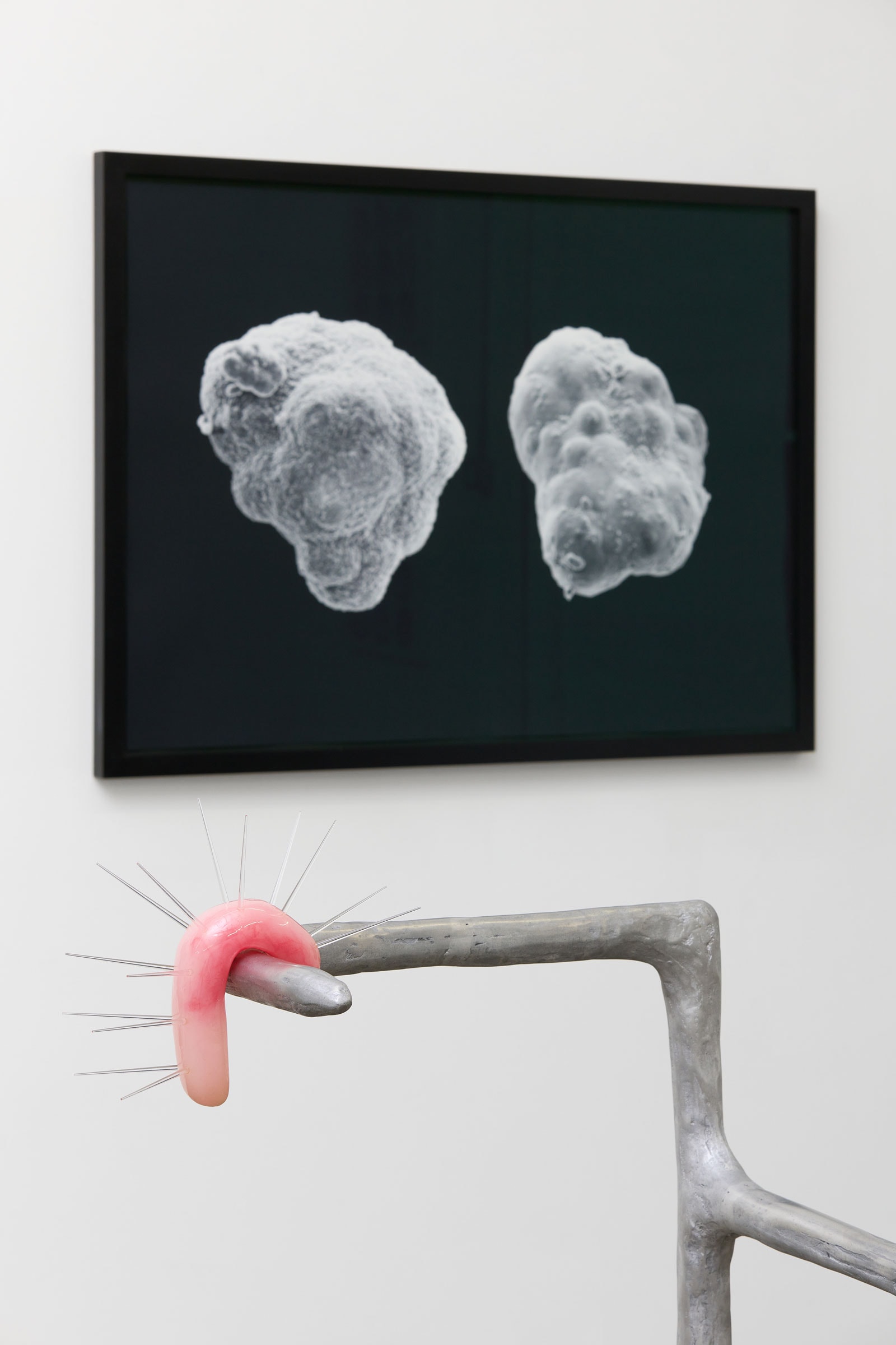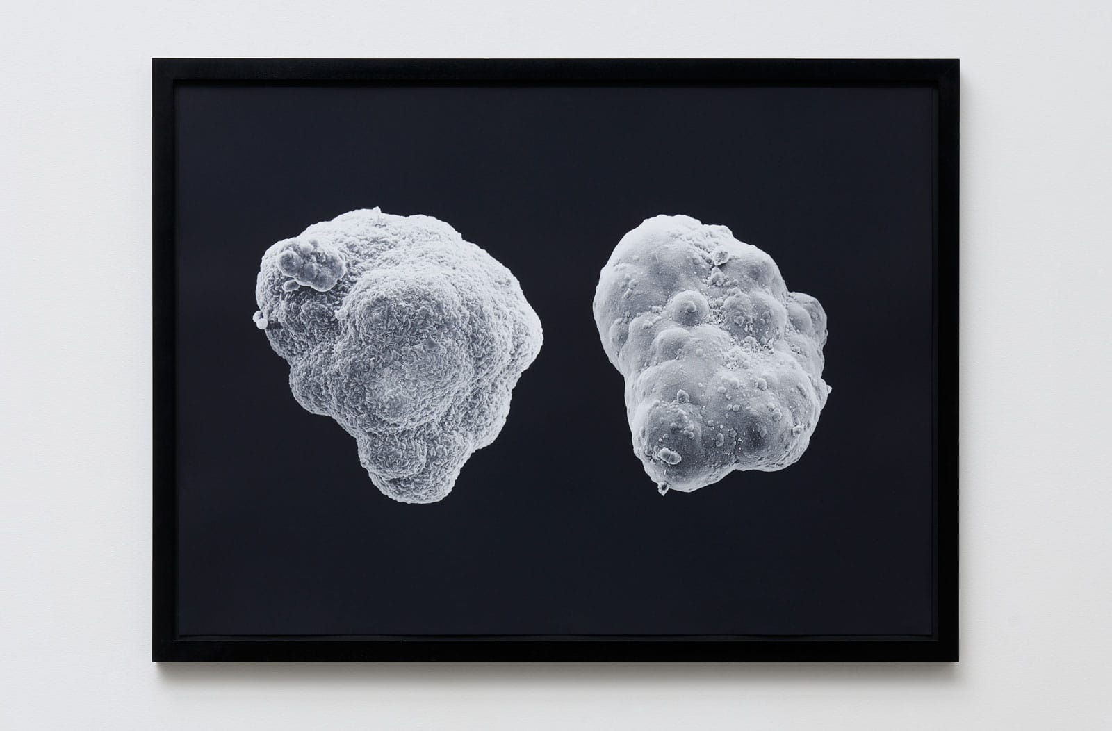 For some of these photographs, as if the camera itself were a measuring instrument, Wagner looked at beakers and petri dishes as objectively and impartially as possible, just how scientists handle their own objects of study. For others, Wagner took an active role in the scientific process, requiring collaboration with the scientists and the use of their equipment, such as Magnetic Resonance Imaging and Scanning Electron Microscopes. Despite these amicable exchanges, Wagner’s practice can also be seen to disrupt science. By refining aesthetically pleasing images from what are otherwise utilitarian objects, Wagner stalls the seemingly inexhaustible march towards new discovery. Scientific evidence, here, is not used to prove or disprove a narrow hypothesis, but rather as an access to point to the collective unconsciousness.