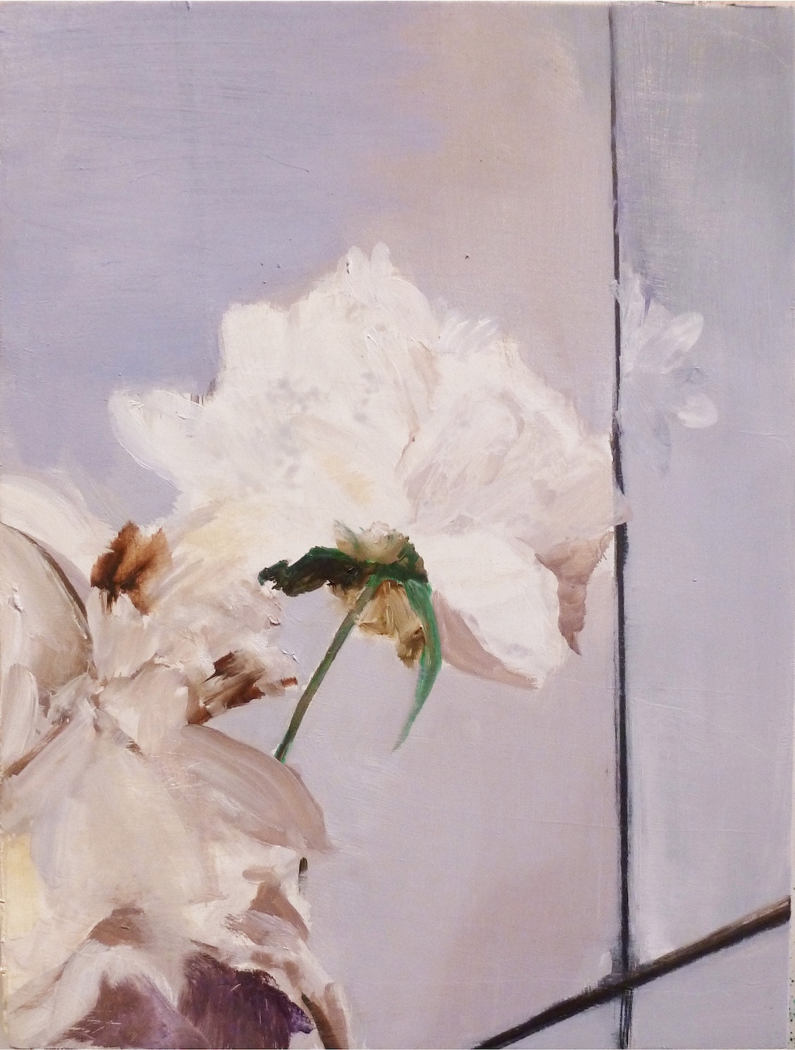 Although it is tempting to subscribe to the notion that all galleries are formulaic and homogenous in appearance, Irons proves that through sustained and deliberate looking, a startling heterogeneity lies in wait. In 976 Madison Avenue, cool, earthy tones sketch out an anonymous corner of the Gagosian’s Upper East Side outpost while in John McCracken at Zwirner, a muted champagne room is nearly completely bisected by a pillar of black, white and gray. In two still lifes, Irons produces a sampling of the innumerable things that fall under the umbrella of et cetera in the show’s title. For a brief moment they reintroduce aspects of life outside the gallery. Galleries, etc. playfully deprecates the insider shorthand and shortspeak that is rife within the spaces on view, but in the formal care Irons takes with her subject, a serious consternation and contemplation, suggestively hopeful, is also present.